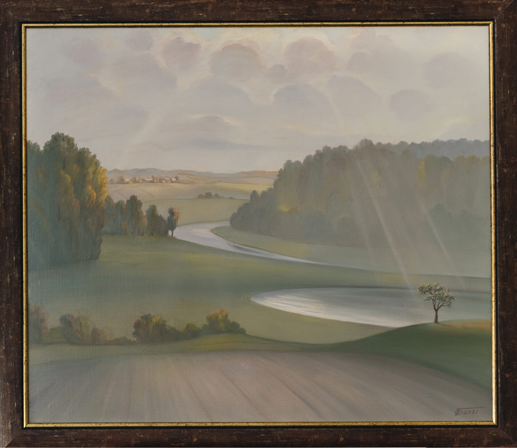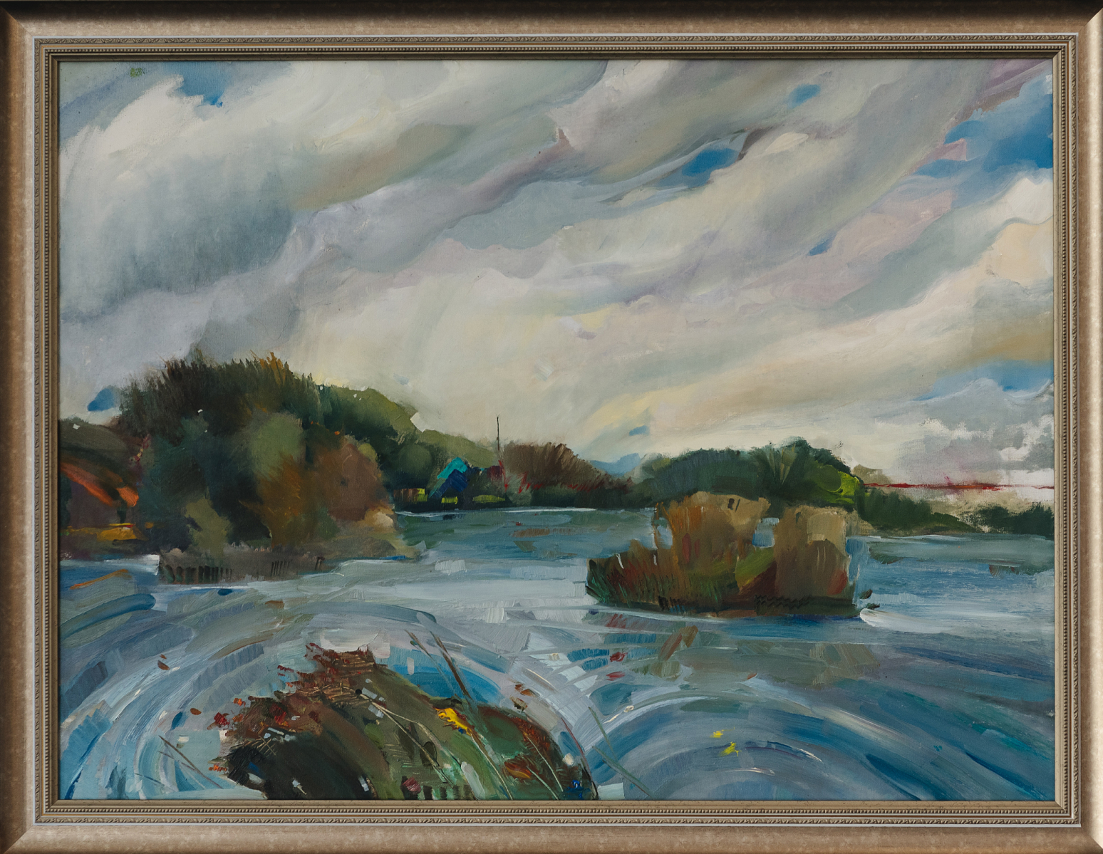 Картина написана автором с использованием главного отличительного приема-свет -стержень работы. В данном произведении конкретное место автор пропускает через собственное эмоциональное состояние.
